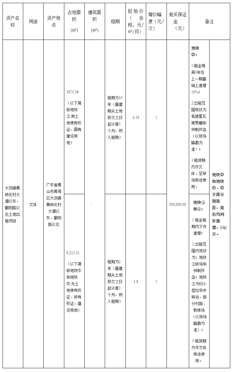 1.招租人: 佛山市南海大沥土地整理有限公司