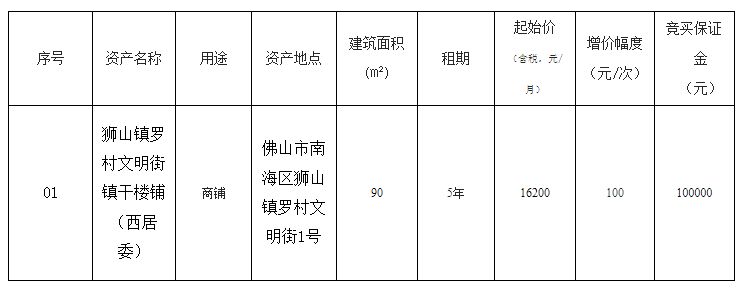 佛山市顺德区容桂街道红旗社区居委会红旗中路77号之一租赁权竞投