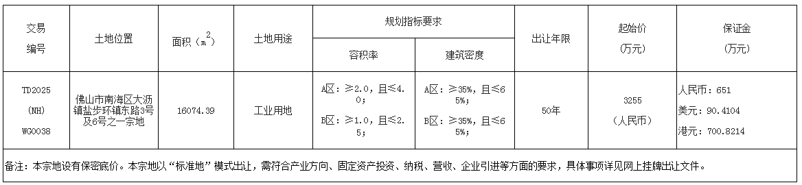 经佛山市人民政府批准,佛山市自然资源局决定委托佛山市公共资源交易中心南海分中心采用网上挂牌方式出让下列地块的国有建设用地使用权。现将有关事项公告如下: