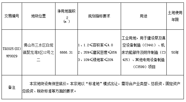 五、有意参与竞买者可于2025年5月26日后登录网上交易系统下载TD2025(SS)WP0029地块的《佛山市三水区国有建设用地使用权网上拍卖出让文件》。