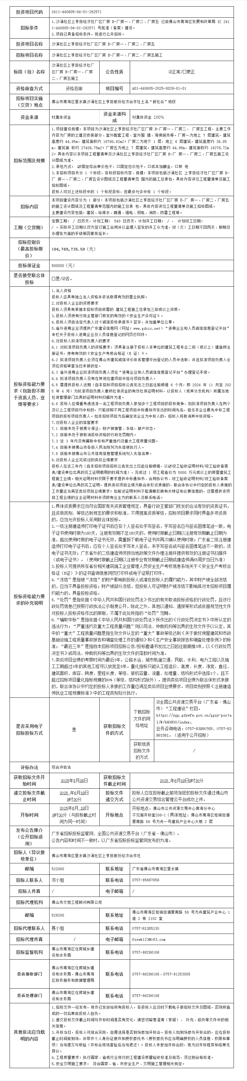 南海区里水镇沙涌社区湖洲广场商贸综合楼施工招标公告