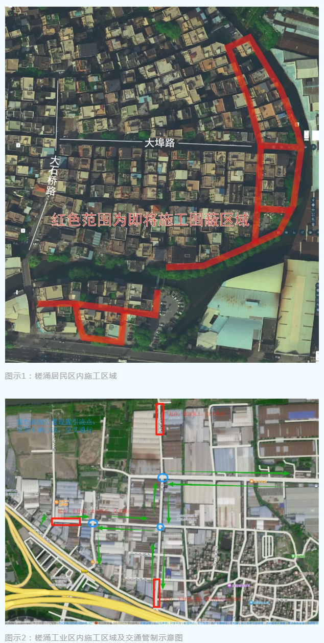 因北滘镇雨污分流改造工程需要,顺德区南顺第二联围水体综合整治工程项目将于2025年5月27日-2025年10月15日对槎涌社区以下区域(见图示1、2)进行管道开挖施工,期间相关道路将分段采取封闭或半封闭措施。