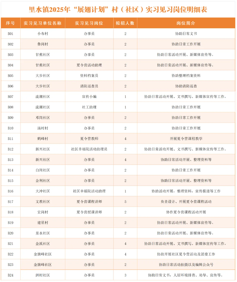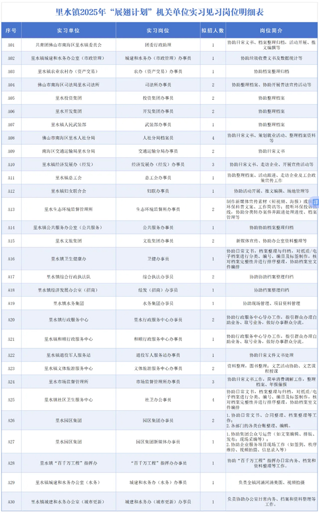 (三)本次“展翅计划”所有机关、事业单位岗位属于社会实践岗位,只提供早午餐,不提供住宿、报酬及转正机会。