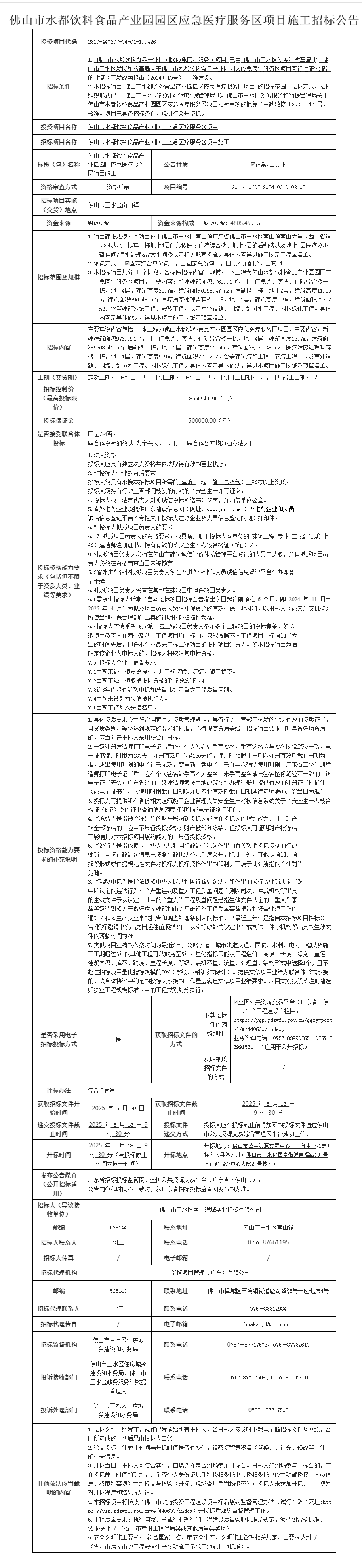 佛山市水都饮料食品产业园园区应急医疗服务区项目施工招标公告