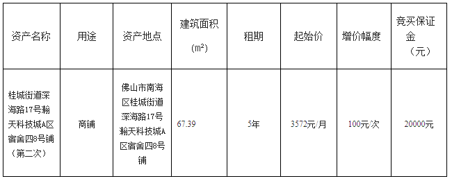 南海桂城街道深海路17号瀚天科技城A区宿舍四8号铺物业租赁项目(第二次)