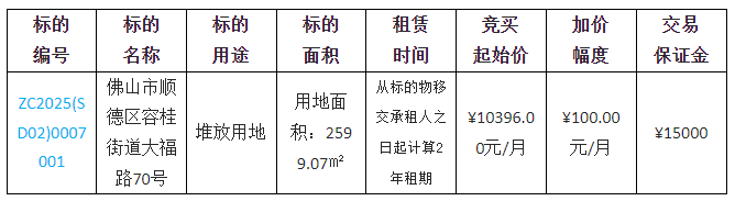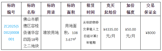 出租方采用网上竞价方式出租位于佛山市顺德区容桂街道华容四路18号之二地块租赁权竞投,欢迎符合资格的竞买人参与竞价。