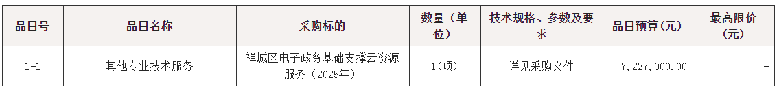 采购包1(禅城区电子政务基础支撑云资源服务(2025年) 项目):