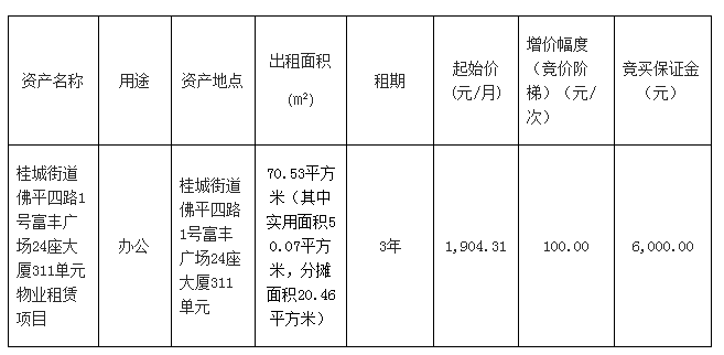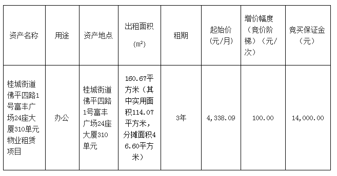 南海桂城街道佛平四路1号富丰广场24座大厦310单元物业租赁项目