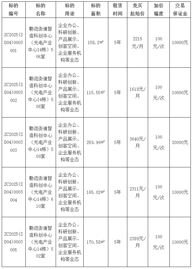 1.项目名称:佛山市顺德区勒流街道智造科创中心(光电产业中心14栋)506室等5宗物业公开招租项目