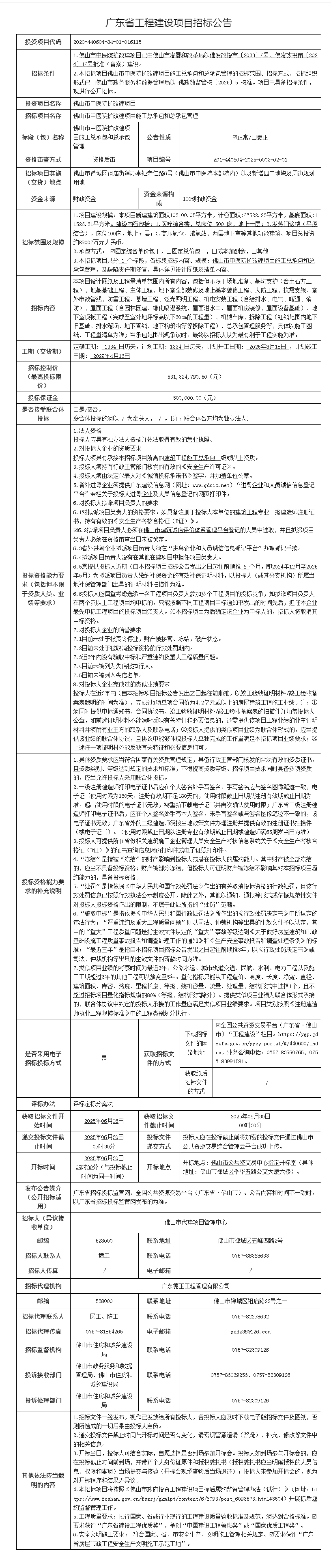 佛山市中医院扩改建项目施工总承包和总承包管理招标公告