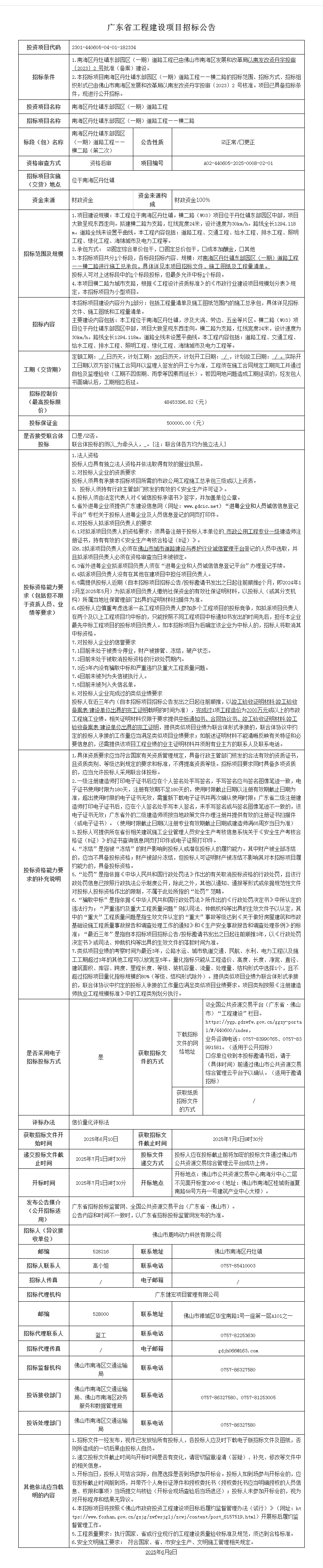时间:2025-06-10 人气:1165 来源:佛山市公共资源交易信息化综合平台 作者: