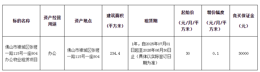 佛山市禅城区张槎一路115号一座804办公物业租赁项目
