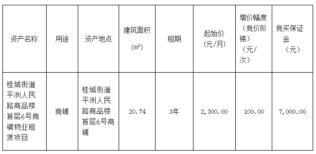 南海桂城街道平洲永安中路3号首层商铺之一物业租赁项目