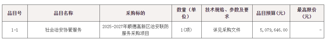 项目名称:2025-2027年顺德高新区治安联防服务采购项目