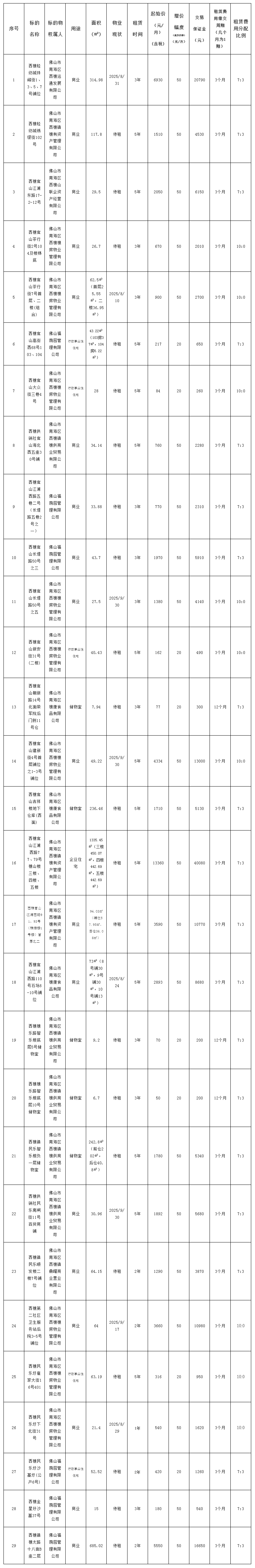 5.上述物业均按现状招租。表内面积数据仅供参考,以实际交付面积为准,不影响租赁费用标准。
