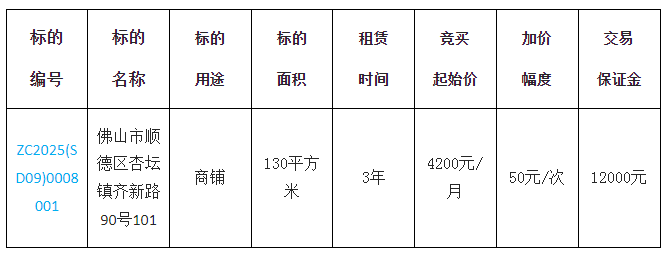 广东杏晖投资控股集团有限公司委托采用网上竞价方式出租位于佛山市顺德区杏坛镇齐新路90号101使用权,欢迎符合资格的竞买人参与竞价。
