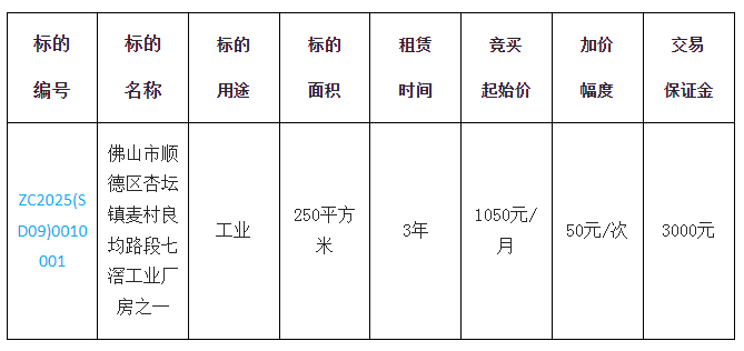 佛山市顺德区杏坛镇麦村良均路段七滘工业厂房之一租赁公告