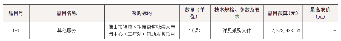 项目名称:佛山市禅城区祖庙街道残疾人康园中心(工疗站)辅助服务项目