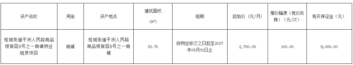 南海桂城街道平洲永安中路3号首层商铺之一物业租赁项目