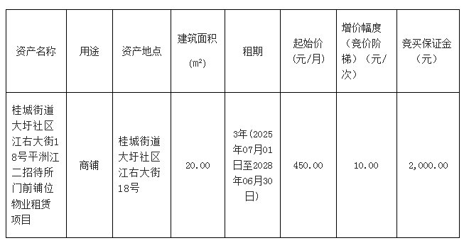 南海桂城街道大圩社区江右大街18号平洲江二招待所门前铺位物业租赁项目