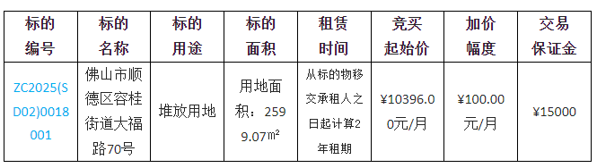 1.项目名称:佛山市顺德区容桂街道大福路70号租赁权竞投(二次)