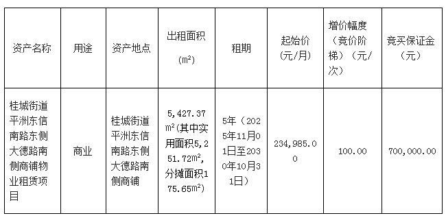 南海桂城街道平洲永安中路3号首层商铺之一物业租赁项目