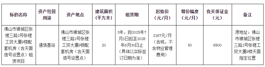 7.优先承租权情况:中国联合网络通信有限公司佛山市分公司为本项目优先承租权权利人。
