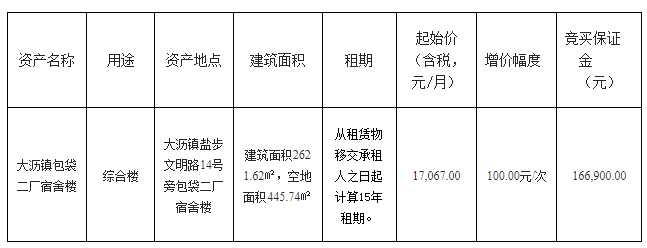 4.产权证照情况:有土地证照(竞买人应充分考虑其风险,一经存入竞买保证金即表示承认、接受本项目的现状,愿意按约定支付租赁价款和遵守租赁合同的约定)。