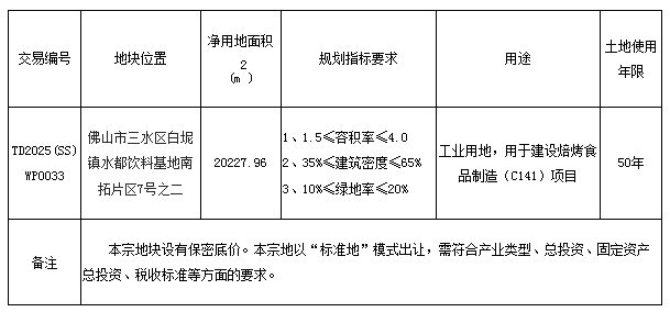 五、有意参与竞买者可于2025年6月18日后登录网上交易系统下载TD2025(SS)WP0033地块的《佛山市三水区国有建设用地使用权网上拍卖出让文件》。