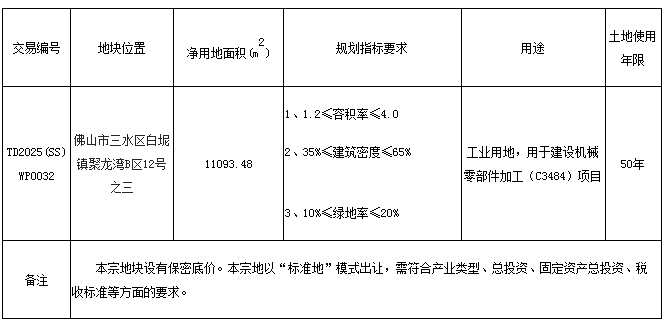 五、有意参与竞买者可于2025年6月18日后登录网上交易系统下载TD2025(SS)WP0032地块的《佛山市三水区国有建设用地使用权网上拍卖出让文件》。