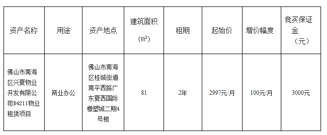 佛山市南海区兴夏物业开发有限公司B4211物业租赁项目