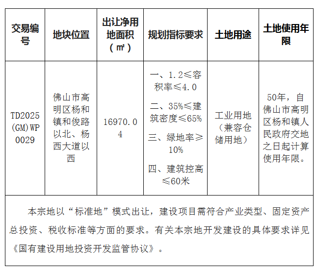 五、有意参与竞买者可于2025年6月20日后登录网上交易系统下载该地块的《佛山市高明区国有建设用地使用权网上拍卖出让文件》。