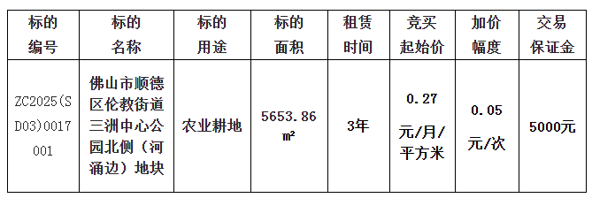 1.项目名称:佛山市顺德区伦教街道三洲中心公园北侧(河涌边)地块公开招租项目(五次)
