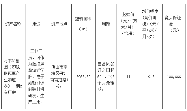 南海万木科创园(即隐形冠军产业加速器)一期2座厂房租赁公告