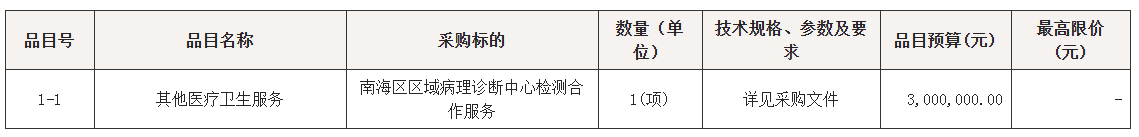 项目名称:南海区区域病理诊断中心检测合作服务