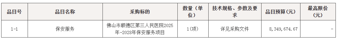 佛山市顺德区第三人民医院2025年-2028年保安服务项目招标公告
