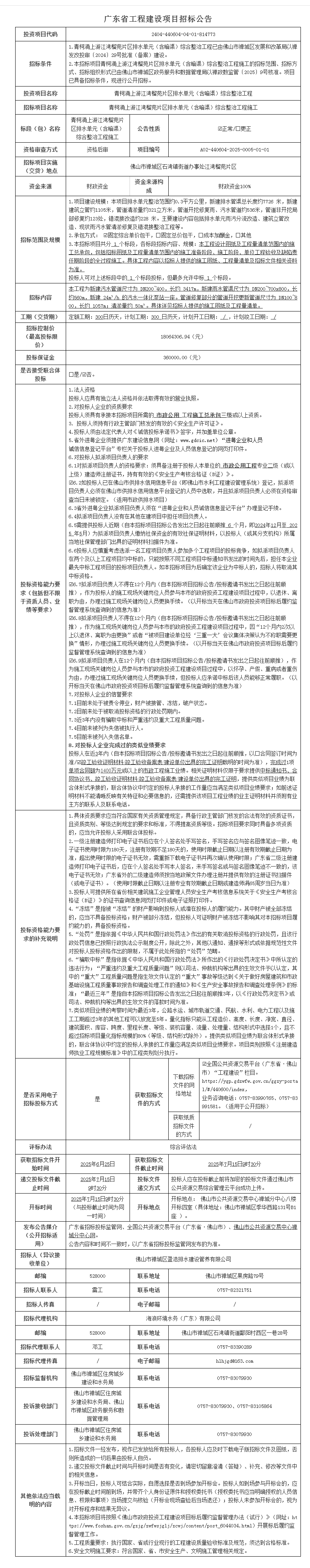 禅城区青柯涌上游江湾榴苑片区排水单元(含暗渠)综合整治工程施工招标公告
