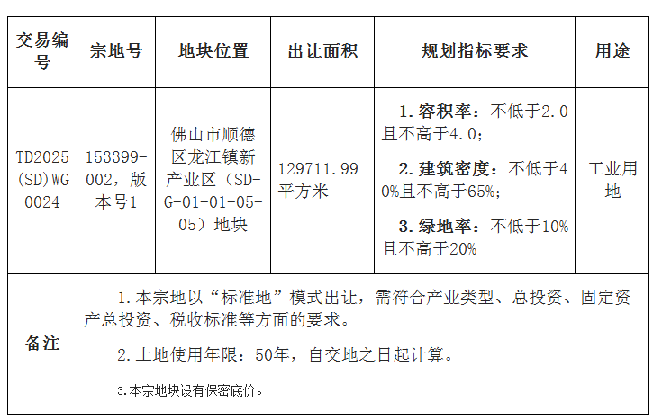 五、有意参与竞买者可于2025年6月27日后登录网上交易系统下载TD2025(SD)WG0024地块的《佛山市顺德区国有建设用地使用权网上挂牌出让文件》。