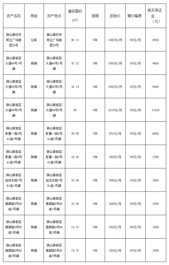 备注:租期20年,其中基建免缴期1年;合同履约保证金按成交价计算的一年租金缴纳。