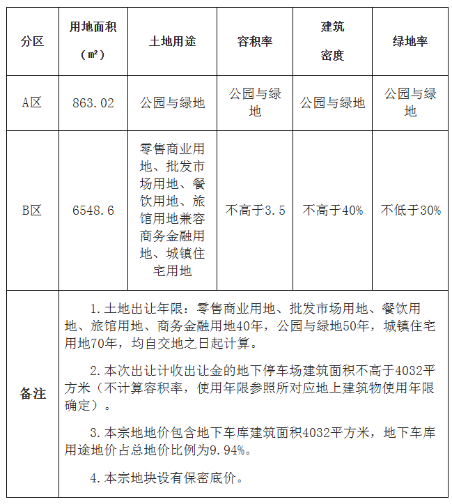 一、网上挂牌出让地块的基本情况和规划指标要求: