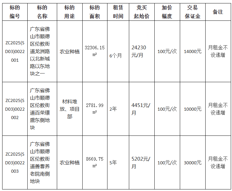 1.项目名称:佛山市顺德区伦教街道龙洲路以北新城路以东地块之一等三宗地块公开招租项目