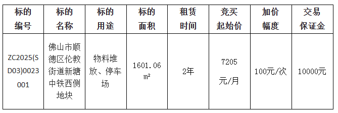 1.项目名称:佛山市顺德区伦教街道新塘中铁西侧地块(二次)公开招租项