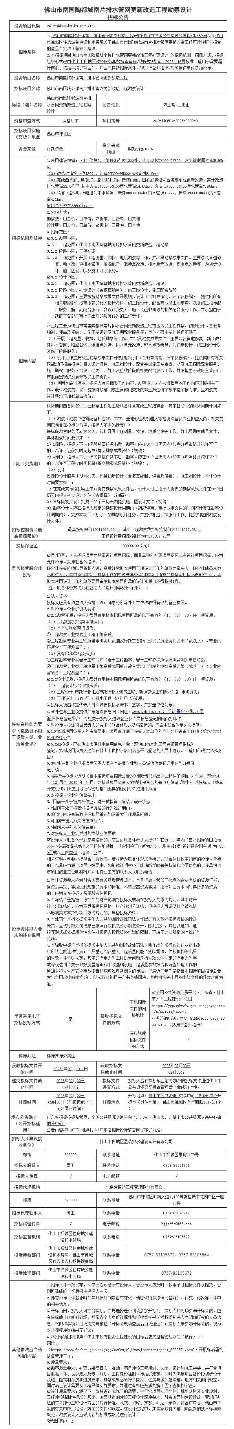 佛山市南国陶都城南片排水管网更新改造工程勘察设计招标公告