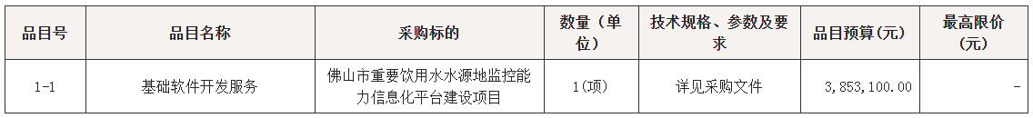 采购包1(佛山市重要饮用水水源地监控能力信息化平台建设项目):