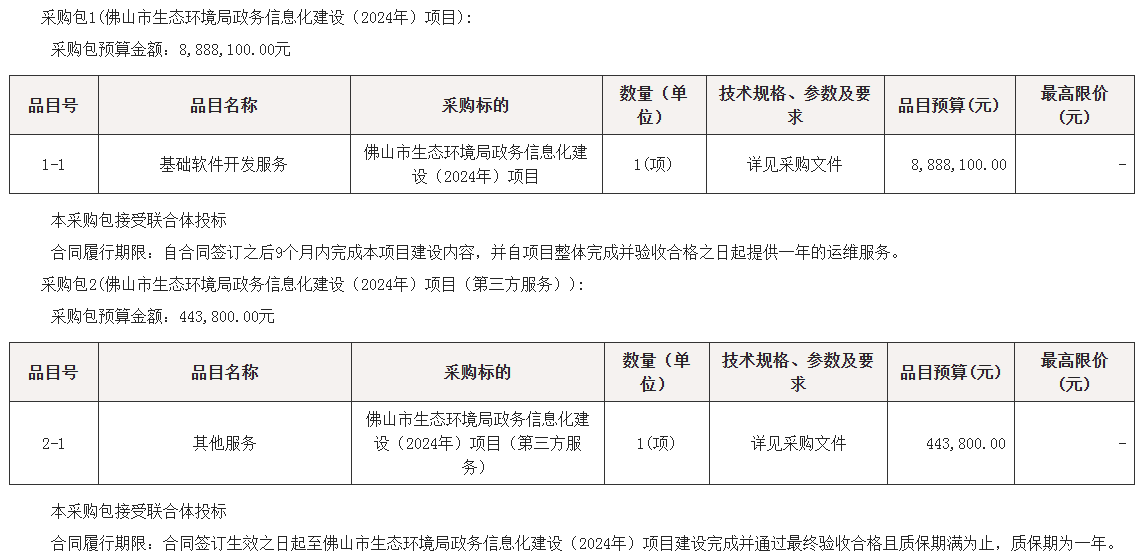 佛山市生态环境局政务信息化建设(2024年)项目招标公告