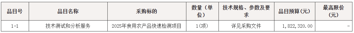 2025年食用农产品快速检测项目采购项目的潜在供应商应在广东省政府采购网https://gdgpo.czt.gd.gov.cn/获取采购文件,并于 2025年07月14日 09时00分 (北京时间)前提交响应文件。