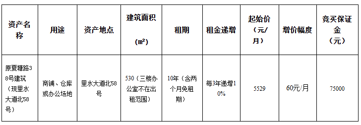 3.竞买人存在拖欠出租人租金情况的,须在报名截止前缴清所欠租金及罚金,方可参与本次竞买。