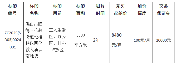 1.项目名称:佛山市顺德区伦教街道伦桂路以西伦教大涌以南地块公开招租项目