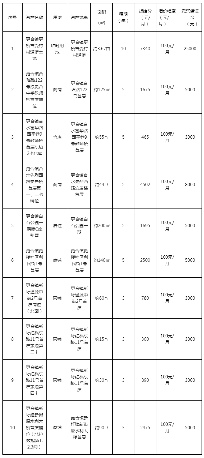 4.租金收取方式:标的1的租金按年支付,标的2-10的租金按每半年支付,都采取先付款后使用的模式。