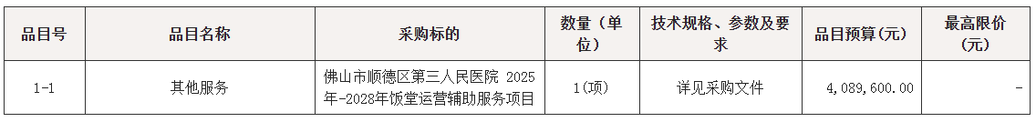 项目名称:佛山市顺德区第三人民医院2025年-2028年饭堂运营辅助服务项目(二次)